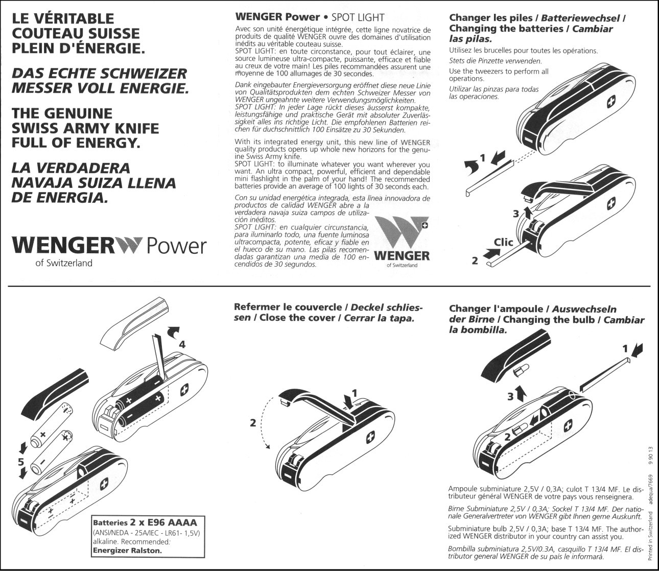 Wenger Flashlight / Spot Light - Instructions