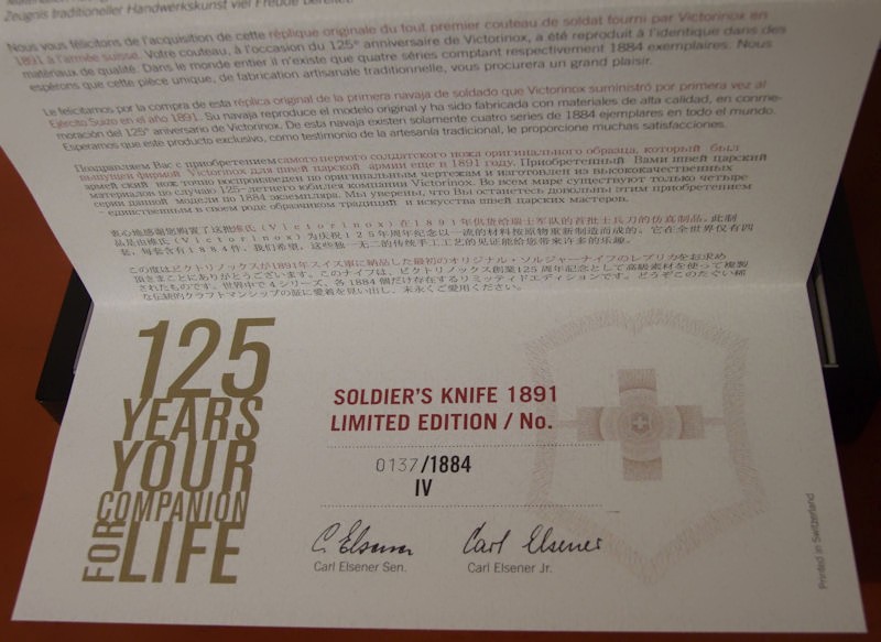 Victorinox Heritage Soldier - Paperwork - Certificate