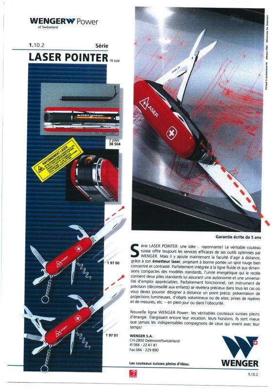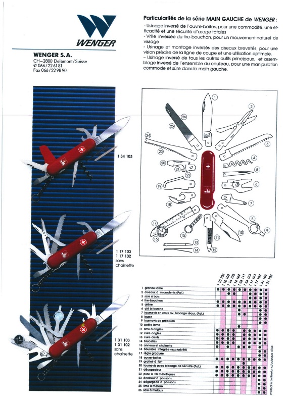 Wenger product sheets (in French) obtained from a European Dealer dated 1993-1995 and some undated. Original digital documents obtain by "basilio" (multitool.org).