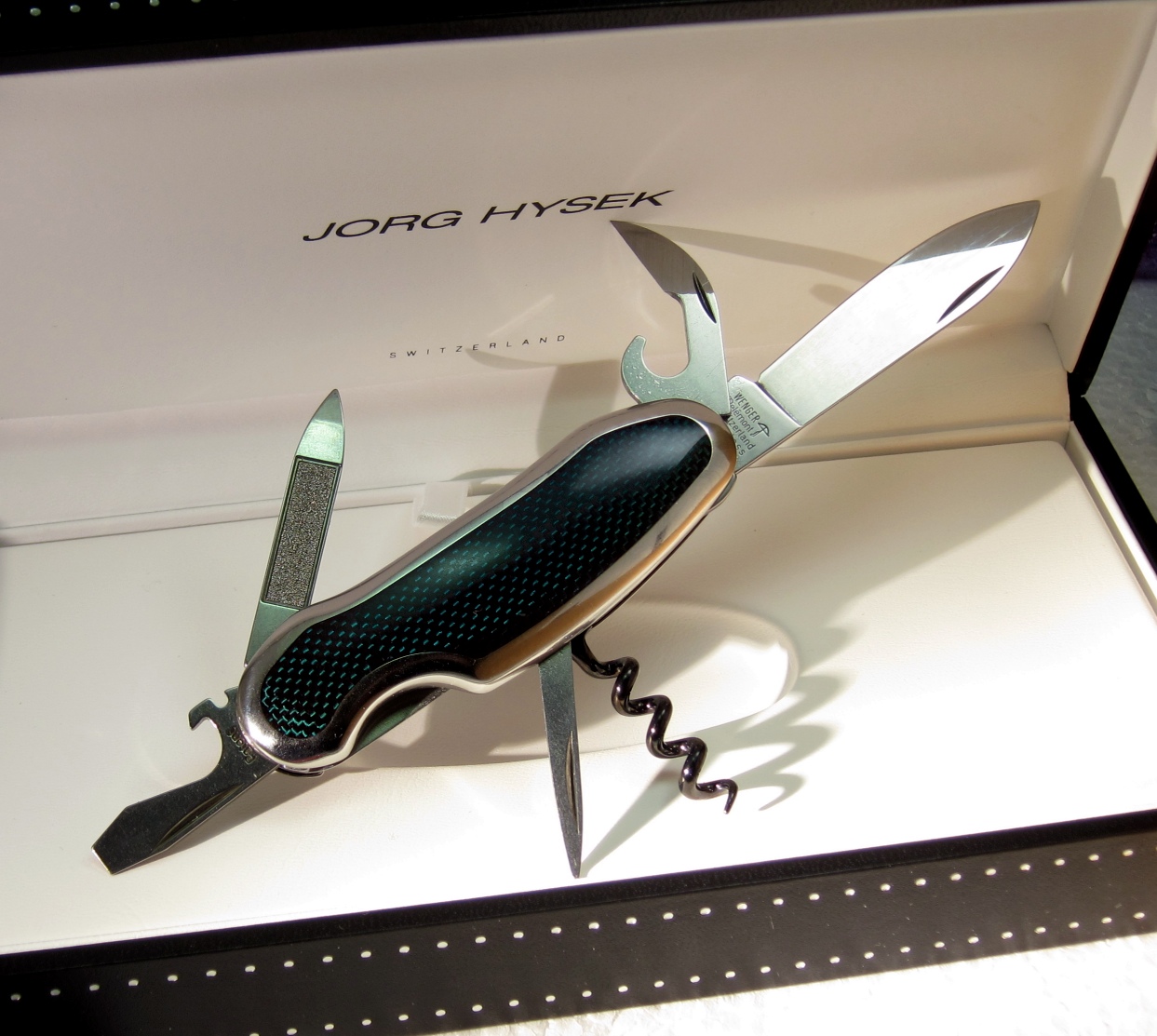 - The Jorg Hysek Editions, designed by renowned designer Jorg Hysek, feature steel and carbon-fiber ergonomic handles, and a PVD coated corkscrew. These were available with red, blue, green, and black carbon-fiber handle inlays.